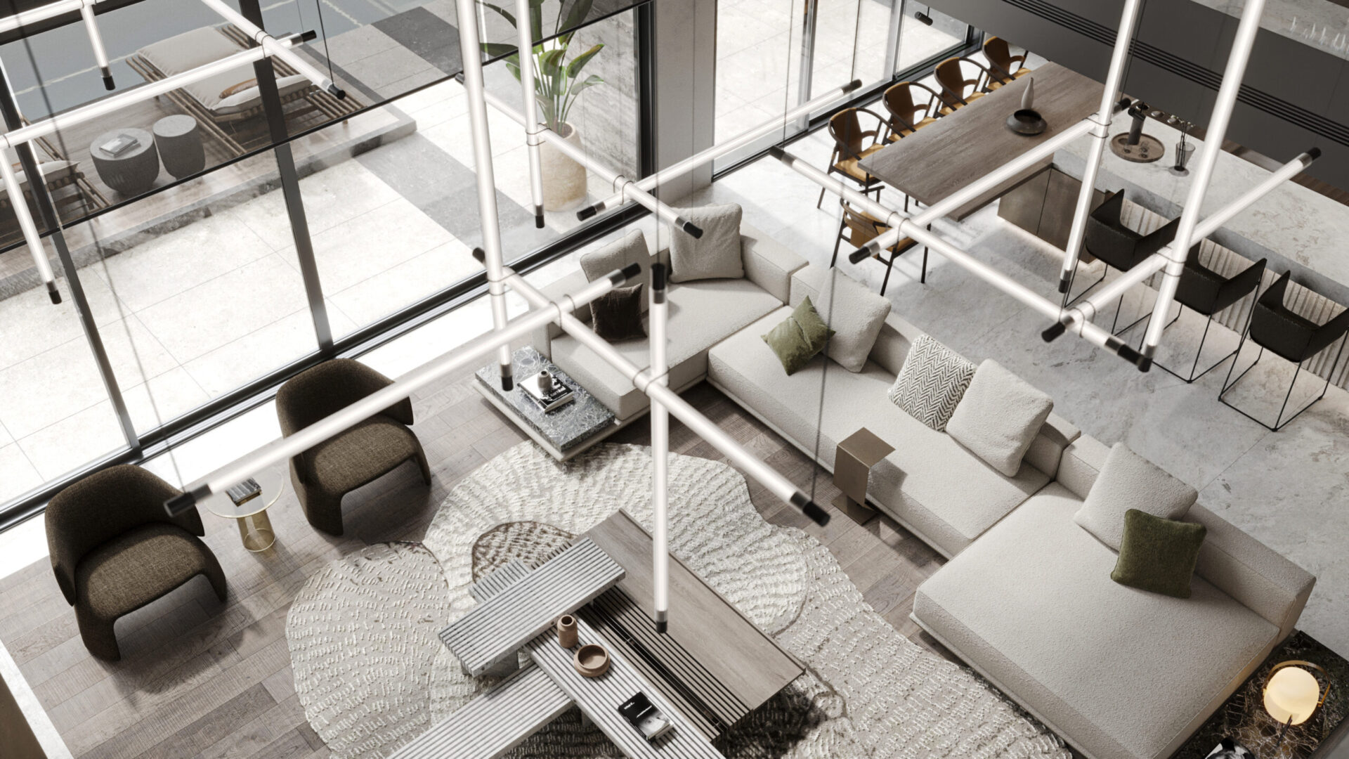 The concept focuses on clarity, proportion and daylight — creating a calm spatial rhythm that supports daily life while elevating the brand’s architectural language.