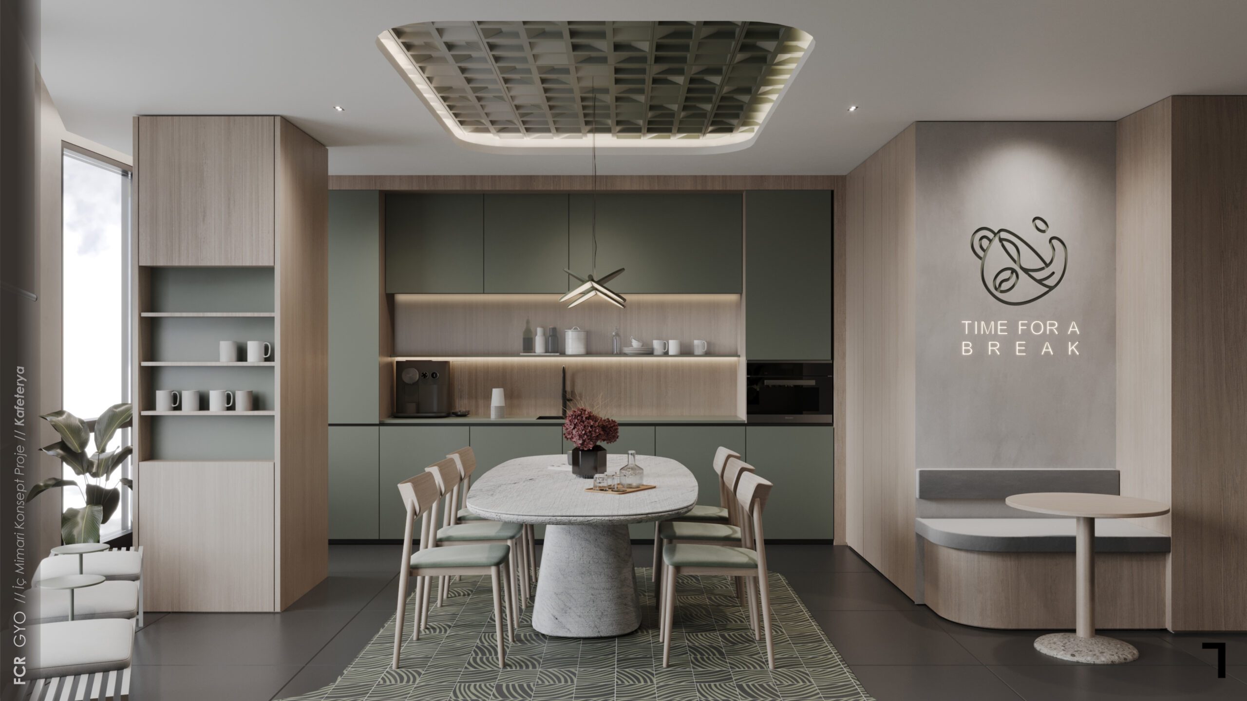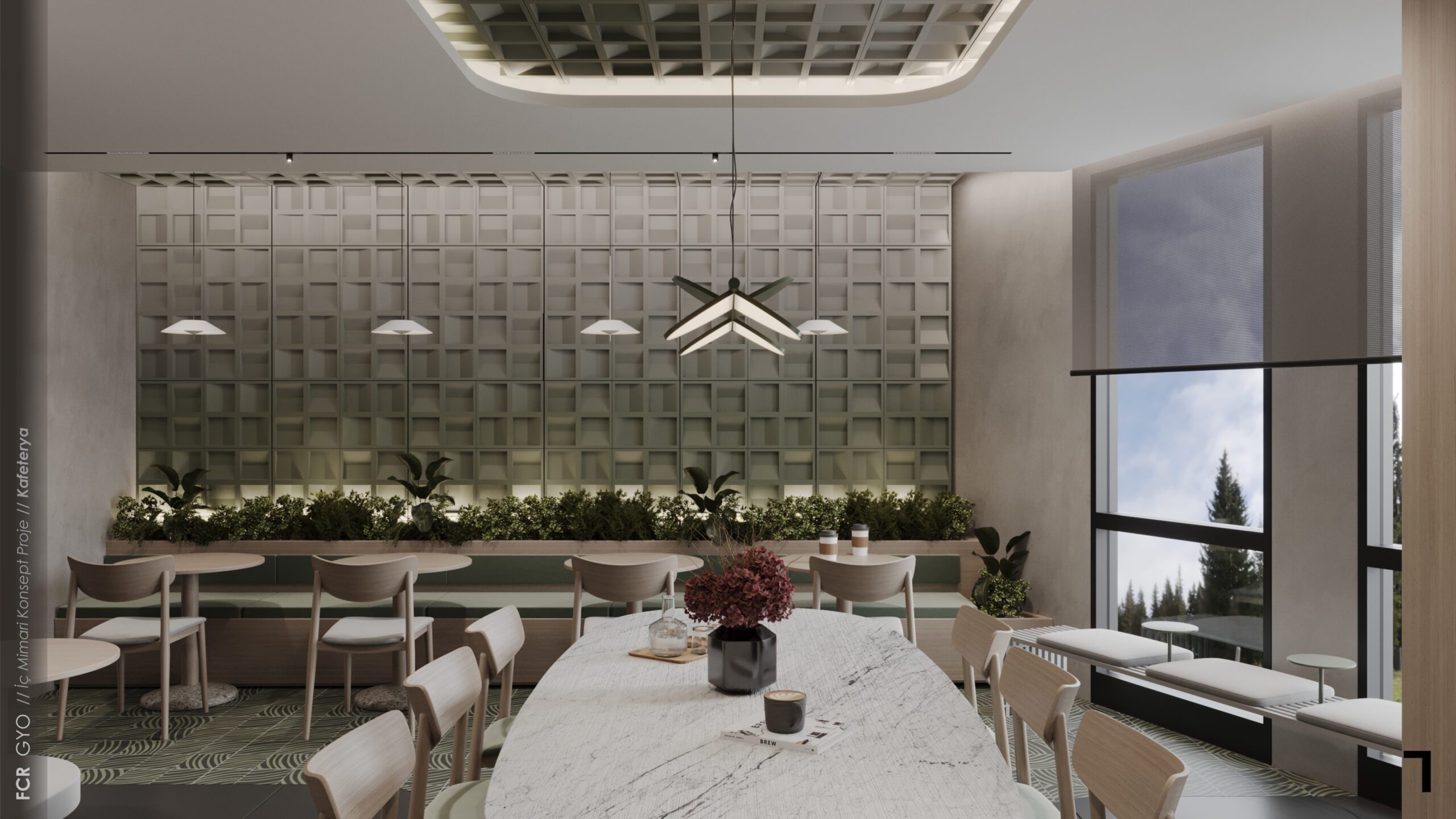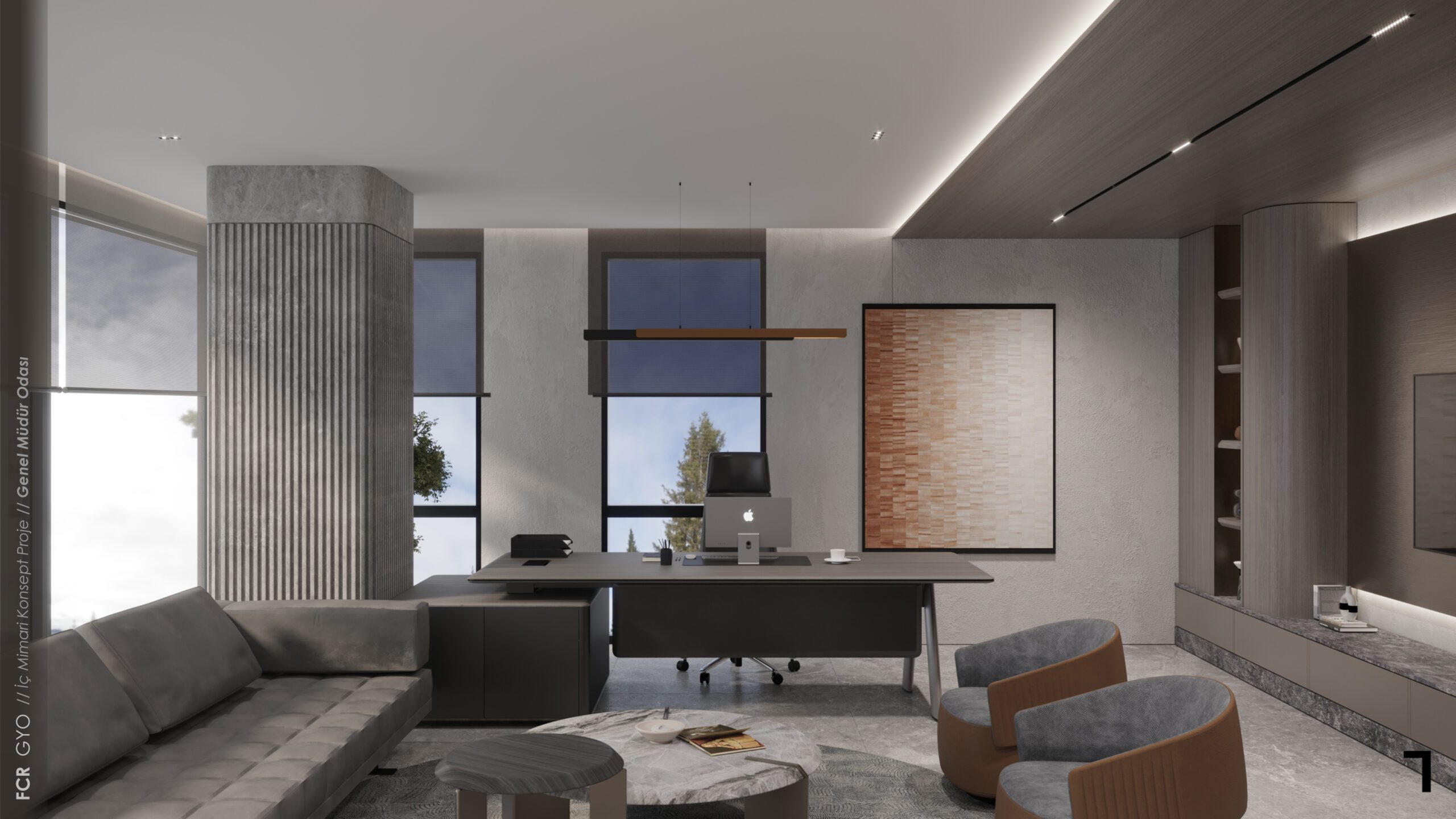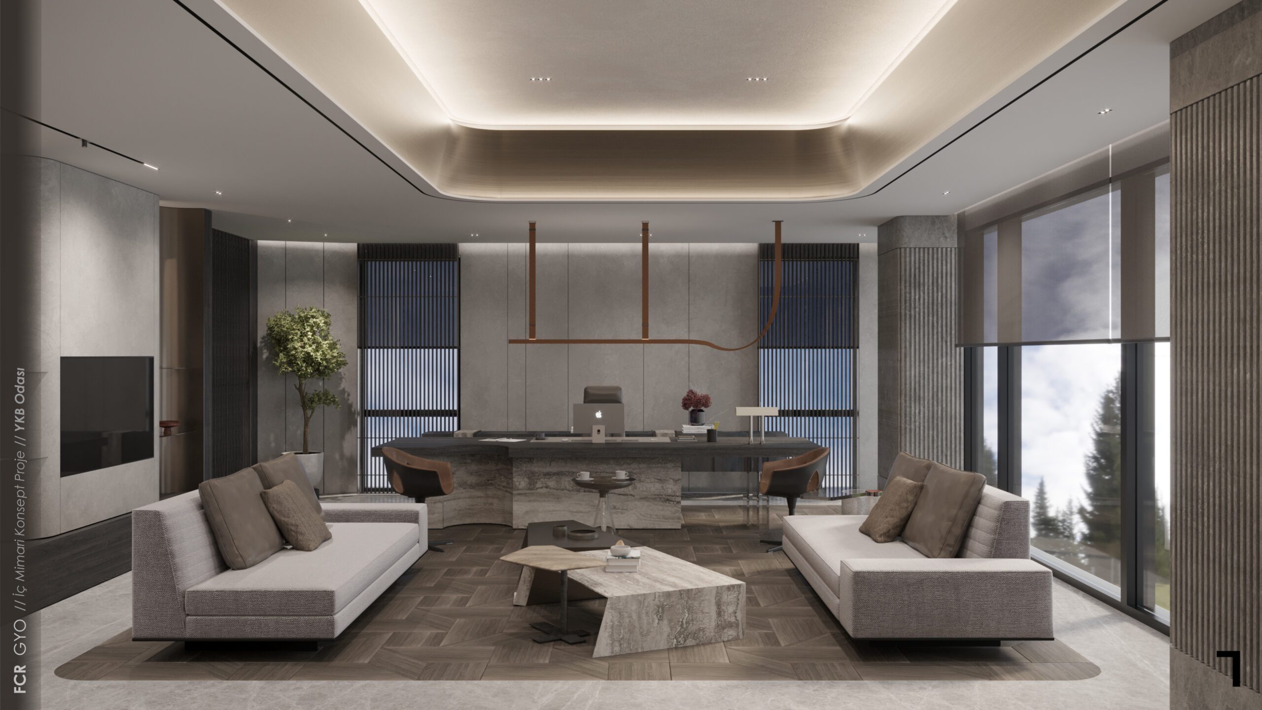 FCR GYO’nun genel merkezi, çalışan odaklı bir yaşam alanı olarak tasarlanmıştır. Sade ama etkileyici renk seçimleri, detaylara verilen özen ve doğal malzemelerle oluşturulan minimalist hatlar, modern çalışma temposuna uyum sağlayan konforlu ve dengeli bir ofis ortamı sunmaktadır.