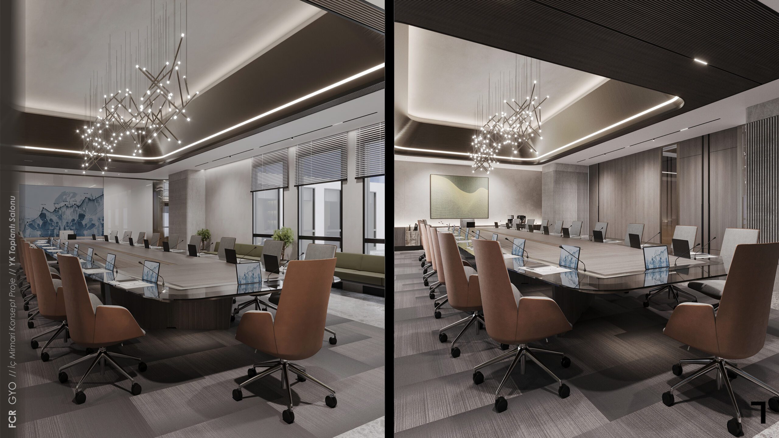 FCR-GYO Genel Merkezi, işlevselliğin ötesine geçerek çalışan refahını ve insan odaklı tasarımı merkeze alan bir yapı olarak kurgulanmıştır. Mimari yaklaşımı; üretkenliği, esnekliği ve konforu destekleyen çözümler sunarken, estetik ve sürdürülebilirlik anlayışıyla çağdaş iş dünyasına uyumlu bir çalışma ortamı yaratmaktadır.